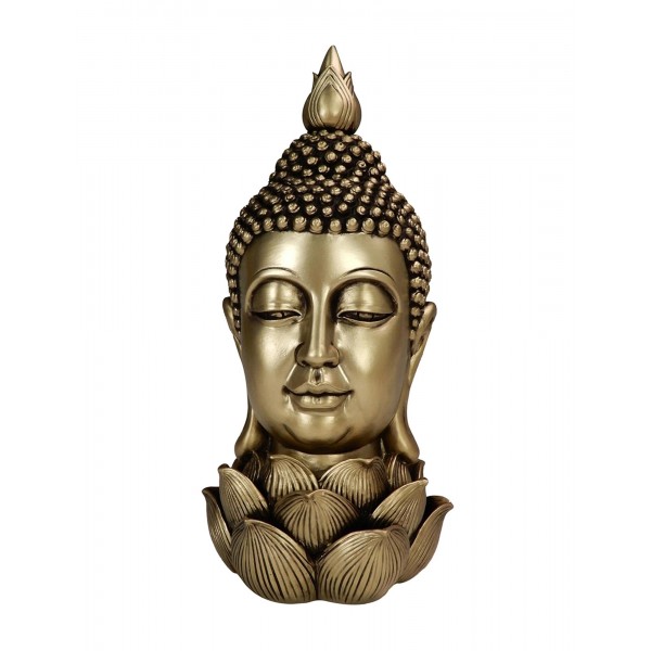 SIGNES GRIMALT Statue en résine, Visage de Bouddha et Coeur de Lotus, Collection Glory, Hauteur 27,50 cm