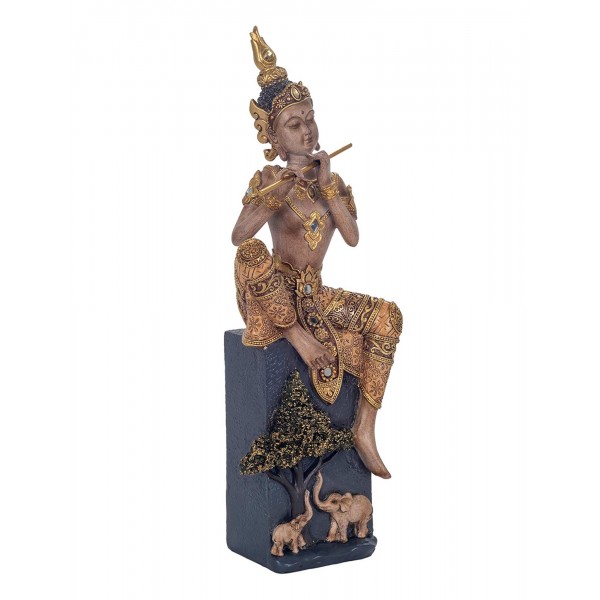 SIGNES GRIMALT Zen et Méditation : Bouddha Musicien Flutiste sur Socle, Collection KHANBURI, Hauteur 36 cm