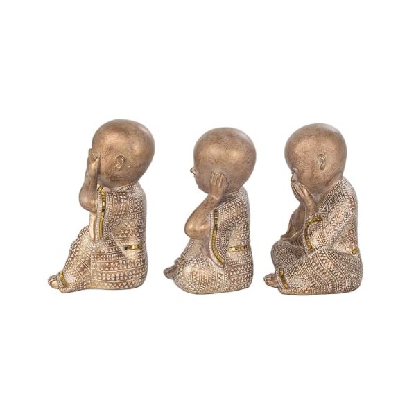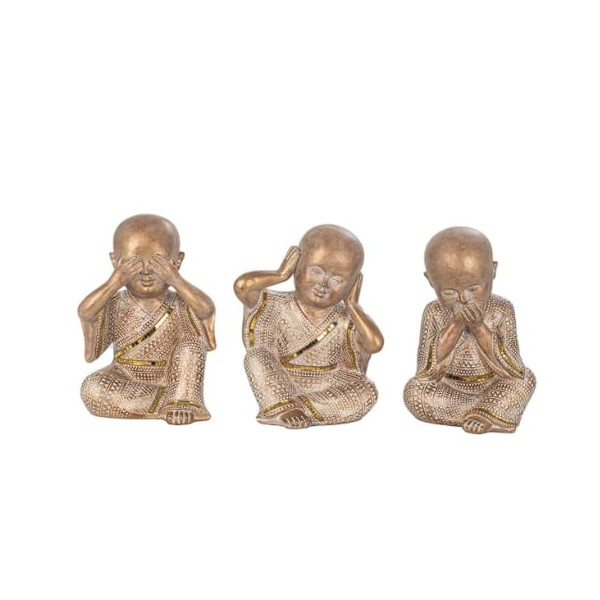 SIGNES GRIMALT Set 3 Moines Bouddha de la Sagesse, Ne Pas Voir, Entendre ou dire du Mal, Kanchana Beige et doré, Hauteur 21 cm