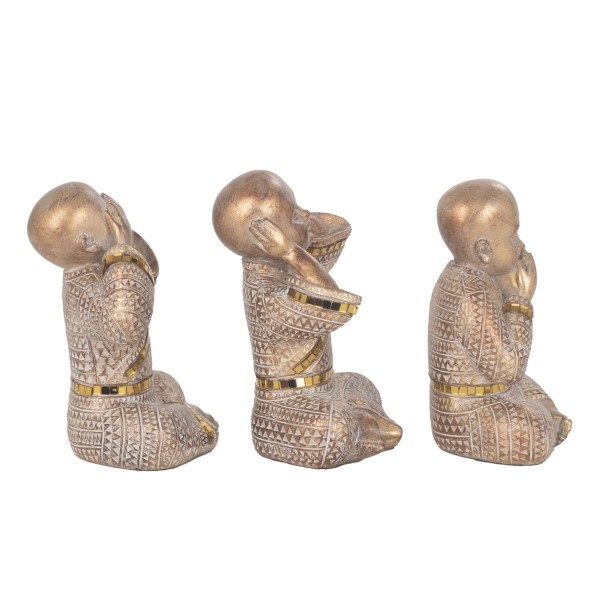 SIGNES GRIMALT Set 3 Moines Bouddha de la Sagesse, Ne Pas Voir, Entendre ou dire du Mal, Kanchana Beige et doré, Hauteur 15 cm