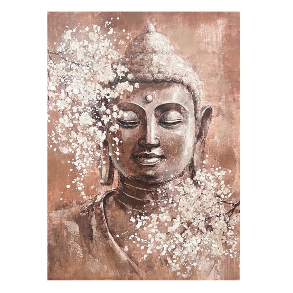 SIGNES GRIMALT Tableau peint, Bouddha Siddhartha, nuages blancs et effet matière marrons, 120 x 80 cm