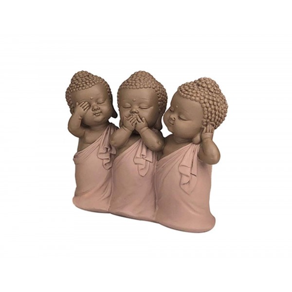G&S Figurine 3 Bouddhas de la Sagesse, Roses. Coll Méditation, H 13 cm