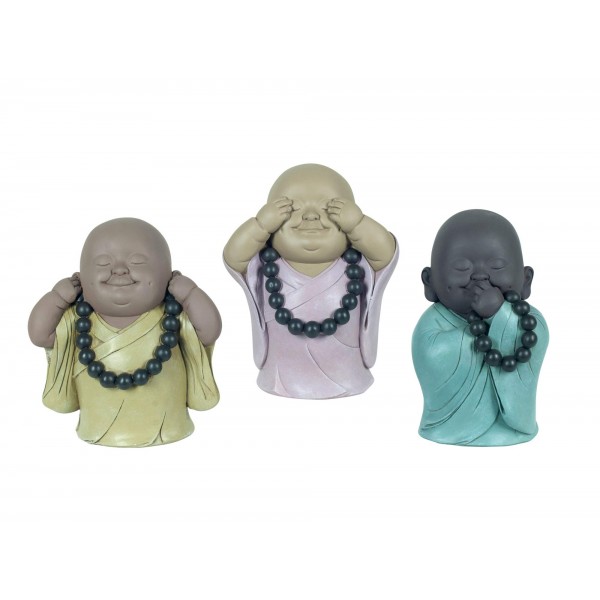 G&S Grandes Figurines en Résine : Set 3 Moines de la Sagesse Baby Zen, Hauteur 18 cm