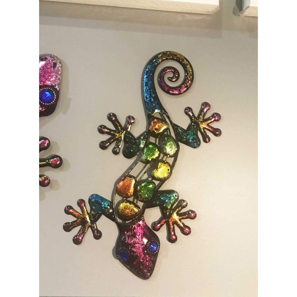 Le Gecko Métal Mural : Modèle Polychrome, H 30 cm