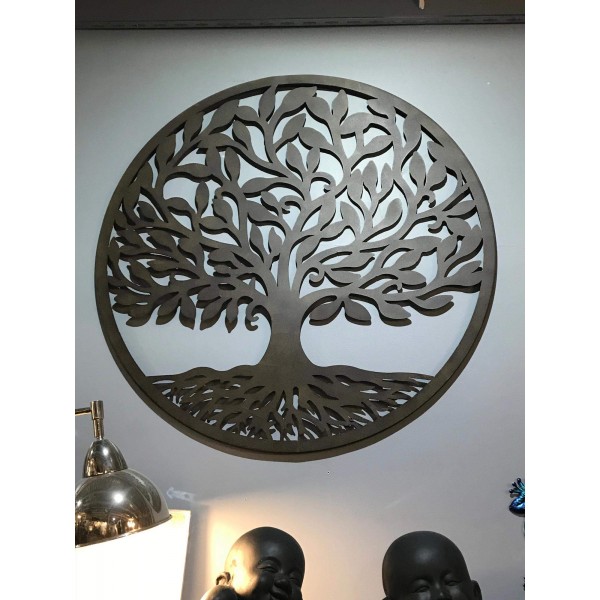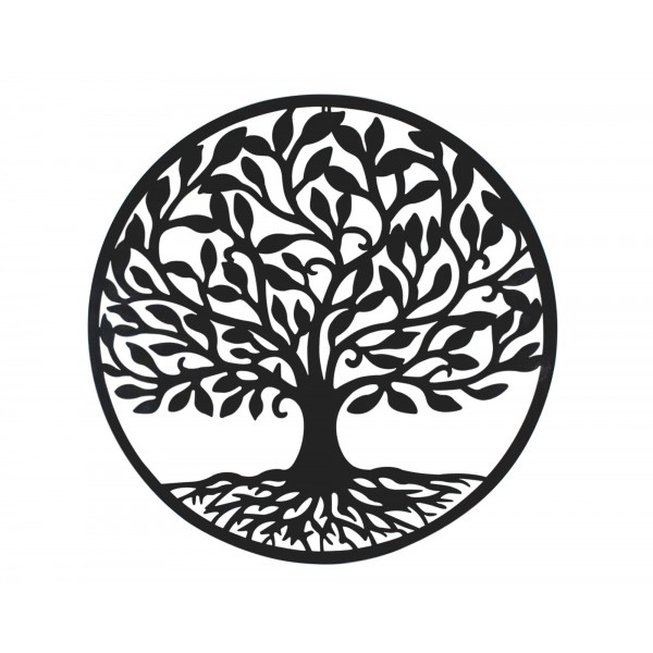 happyDko Décoration murale métal : Arbre de vie, Design Circulaire, Noir, Diamètre H 82 cm
