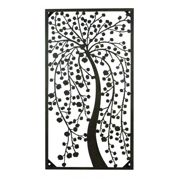 happyDko Décoration murale métal : Arbre design anthracite & ambré, H 70 cm