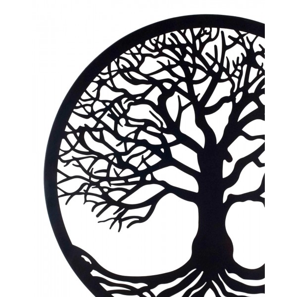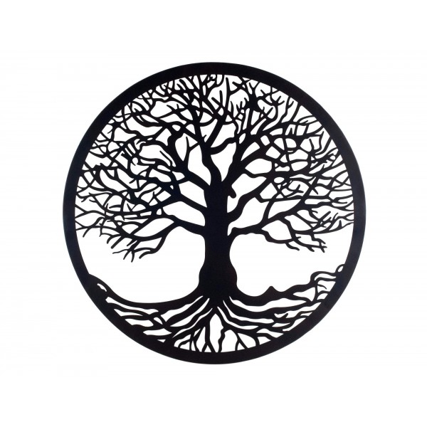 happyDko Déco murale Métal : Arbre de vie, Design circulaire, Noir, Diamètre 60 cm