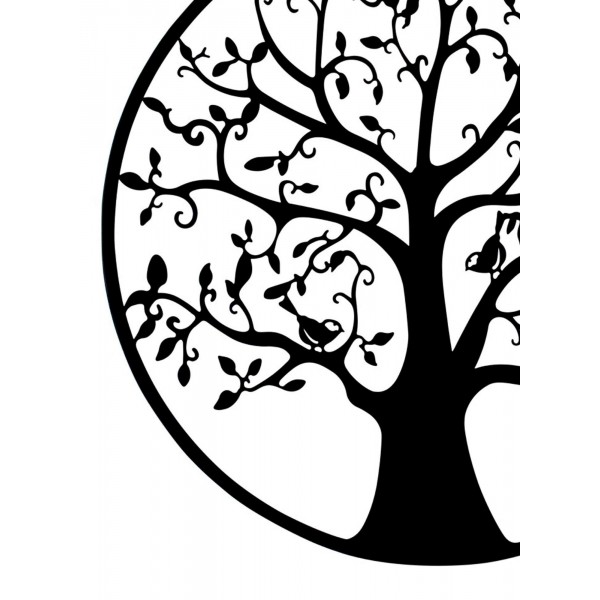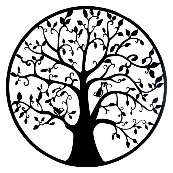 SGRIMALT Déco murale métal : Arbre de vie stylisé et Oiseaux, Noir, Collection Renaissance, Diamètre 80 cm