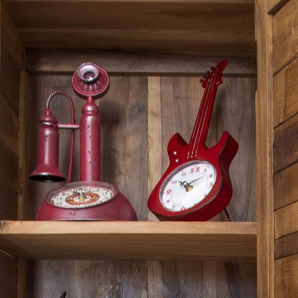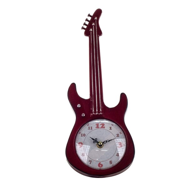 Horloge Vintage Fer à Poser : Modèle Guitare Electrique Rouge, H 34,50 cm