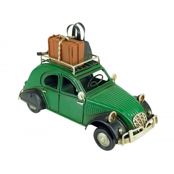 G&S Petite 2CV Miniatures en métal et Valises de Voyage, Modèle Vert Bouteille, L 16 cm
