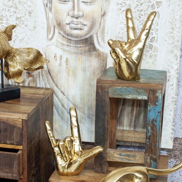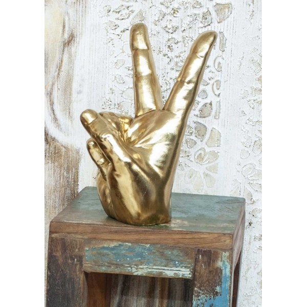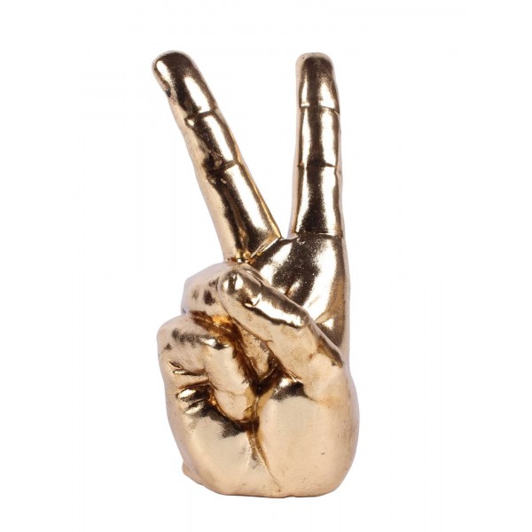 ORIGEN Sculpture Design Dorée, V de Victoire formé par Les Doigts de la Main, H 23 cm