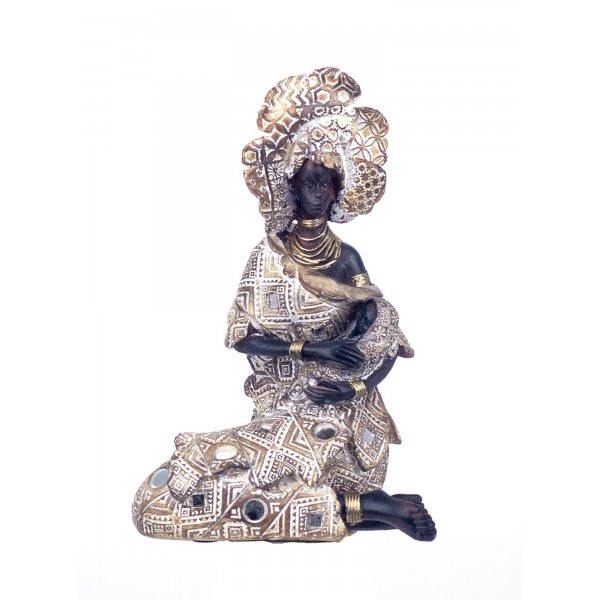 SGRIMALT Figurine Africaine Assise en Tenue Traditionnelle, Collection Dalaba, H 21,5 cm