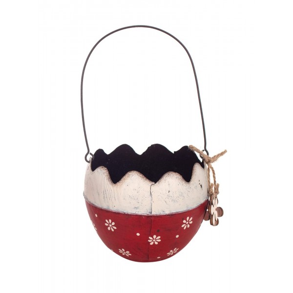 SGRIMALT Cache-Pot Oeuf Rouge et Blanc en métal, Mod 2, Diamètre 11,50 cm