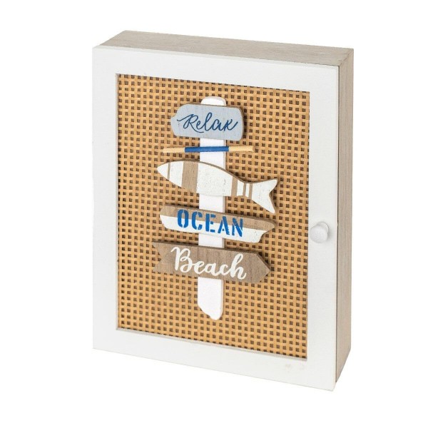ORIGEN Déco Marine : Boite à clés en Bois, Effet cannage et Poisson en Bois, H 26 cm