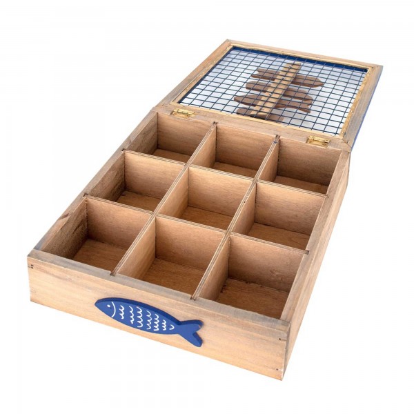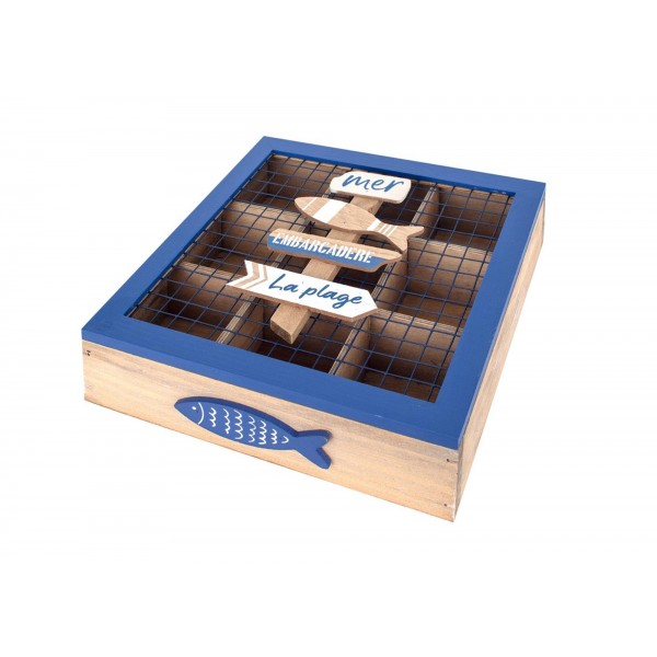 SIGNES GRIMALT Boite à thé carrée, Thème Bord de mer et Plage, 9 compartiments, Longueur 24 cm
