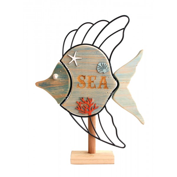 SGRIMALT Déco Poisson Exotique, Bois et Métal, Modèle Sea, H 35 cm