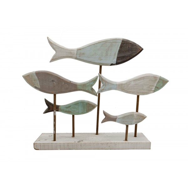 SGRIMALT Décoration Mer : 5 Poisson sur Socle, Bois MDF, Gris, Marron et Vert, L 43 cm