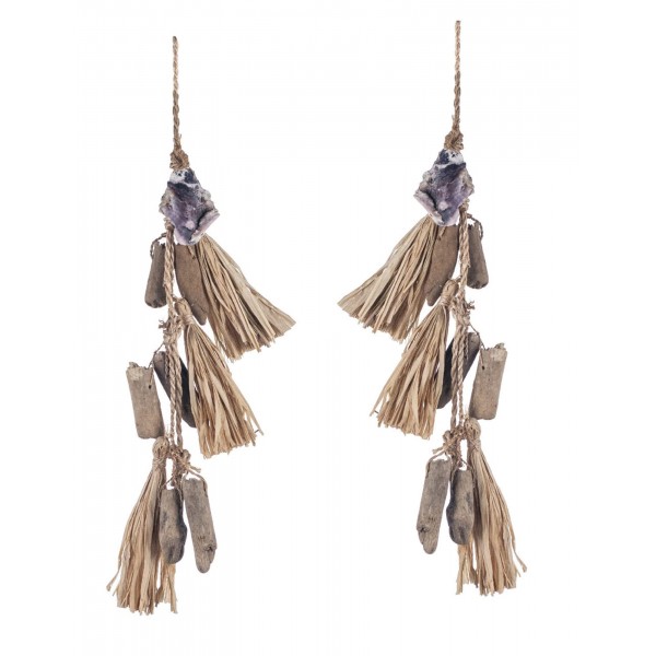 Décoration Marine : Set 2 suspensions Bois flotté, Coquillages et algues Marines, H 35 cm