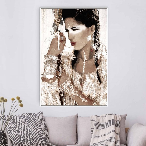 SGRIMALT Tableau Peinture XL : Femme indienne, Collection Bohème et Tribale, H 123 cm