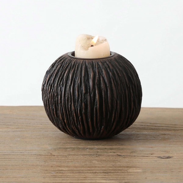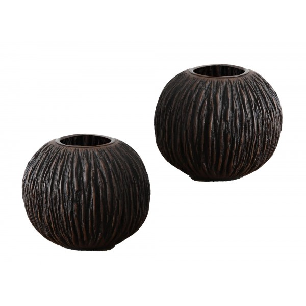 Set 2 Bougeoirs Résine, Modèle KALI, Wenge, Diamètre 10 cm
