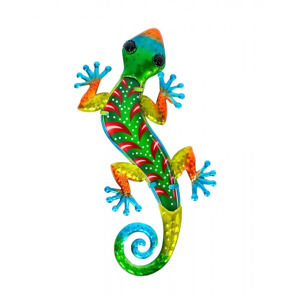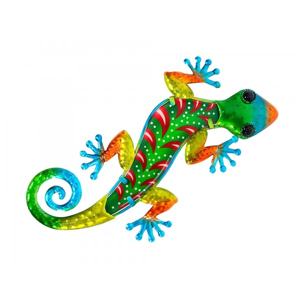 Gecko Mural Vert et Rouge, Métal et Verre, Collection JUNGLE GREEN, H 30 cm