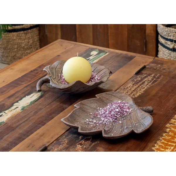 Plateau Feuille en résine, Céruse blanchie et Marron, Longueur 26,5 cm