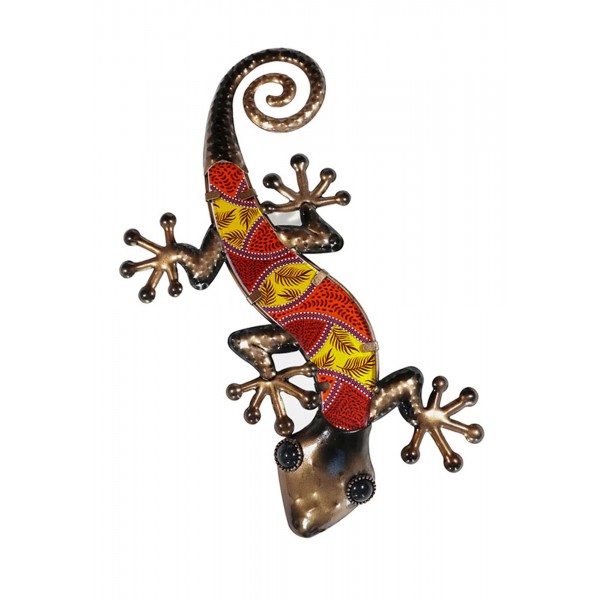 ORIGEN Gecko Mural Rouge, Métal et Verre, Modèle SUNSET, H 30 cm