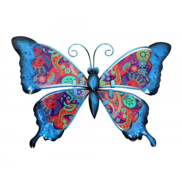 ORIGEN Papillon mural Bleu et Rouge, Métal et Verre, Modèle KASHMIR, L 26,5 cm