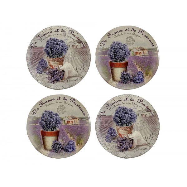 SIGNES GRIMALT Set 4 Dessous de tasse Céramique, Lavande de Provence, 4 pièces, diamètre 11 cm