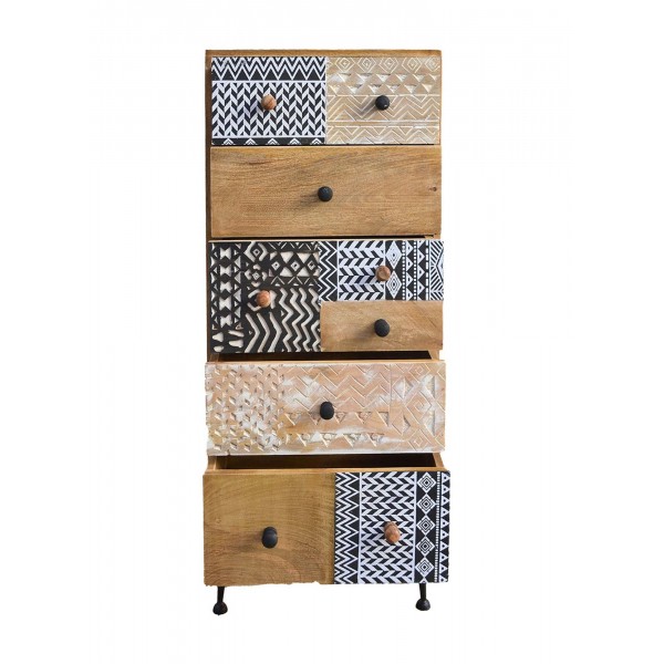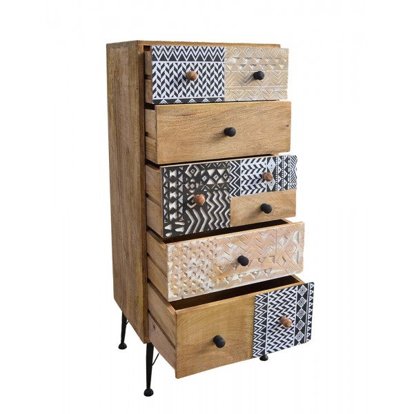 ORIGEN Meuble de Rangement Type Semainier ou Chiffonnier, 5 Tiroirs, Bohème Design et Motif Allover, H 120 cm