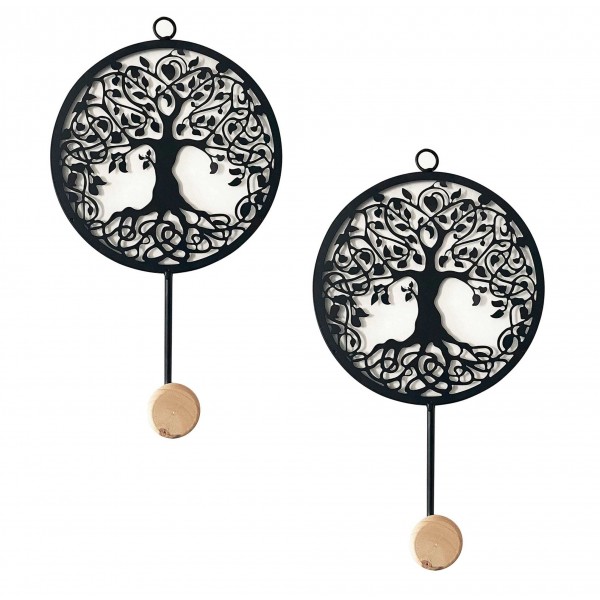 ORIGEN Set 2 Patères - Portemanteaux Métal, Arbre de Vie, Métal et Bois, H 28 cm