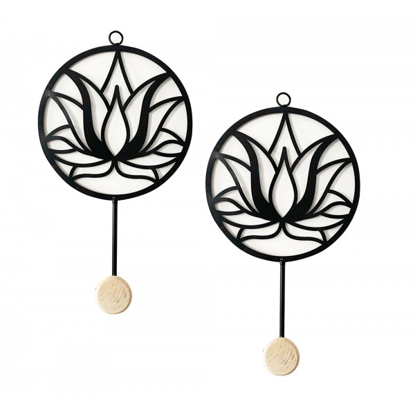 ORIGEN Set 2 Patères - Portemanteaux Métal, Modèle Fleur de Lotus, Métal et Bois, H 28 cm
