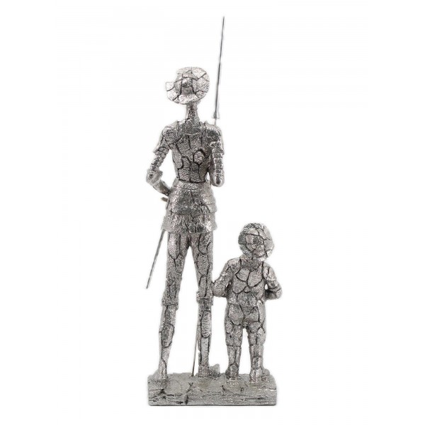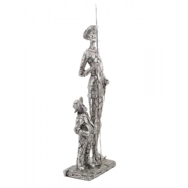 ORIGEN Figurine Don Quichotte et Sancho Panza XL, Finition Argentée contemporaine, H 43 cm