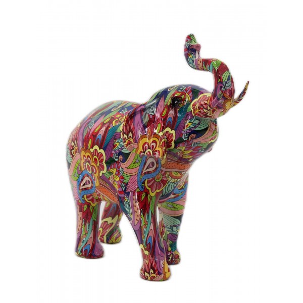 ORIGEN Grande Figurine éléphant Multicolore en résine, Collection MANDALART, H 28 cm
