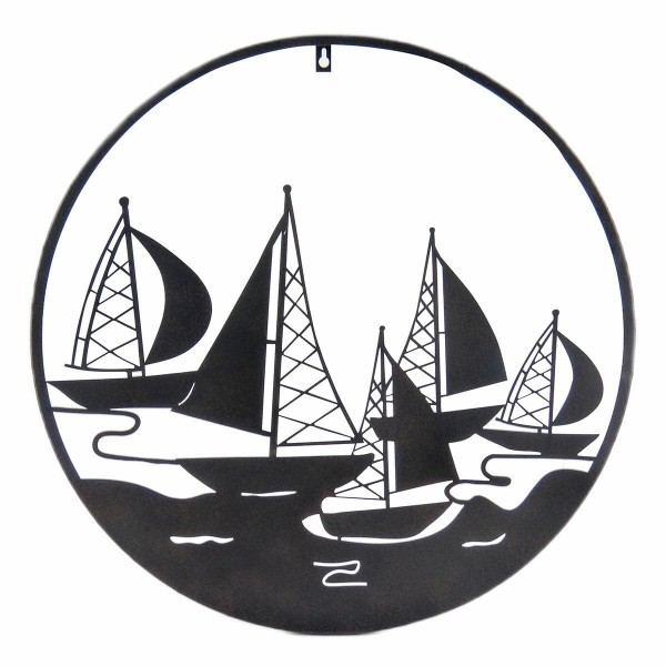 ORIGEN Déco murale Fer : Régate 5 Voiliers en métal ajouré, Noir, Diamètre 60 cm