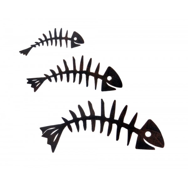 ORIGEN Déco Murale Métal : Set 3 silhouettes Poissons en arête, L 45 cm (Grand modèle)