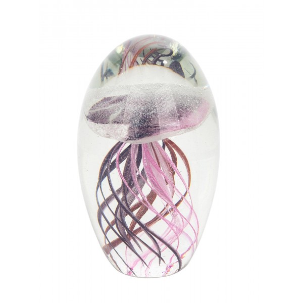 Presse-papiers Rond en Verre : Méduse Roses et Bordeaux, Paillettes Brillantes, H 16 cm.