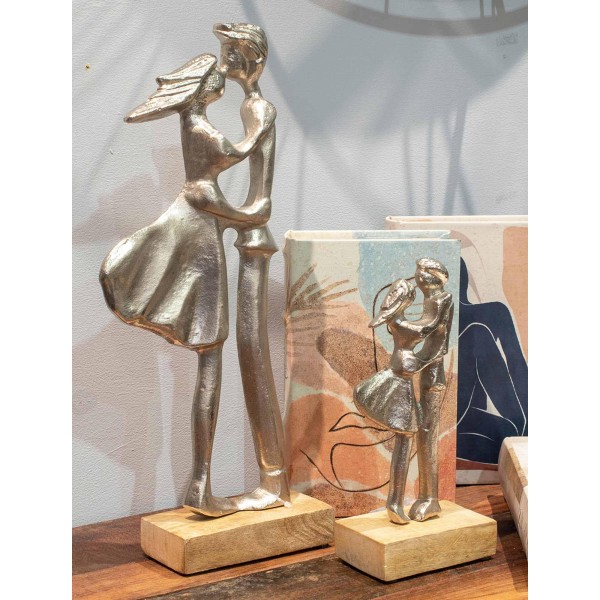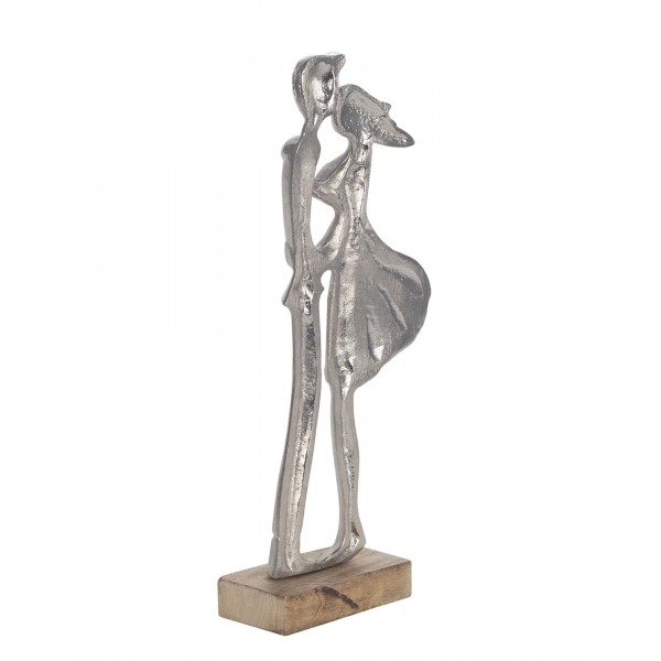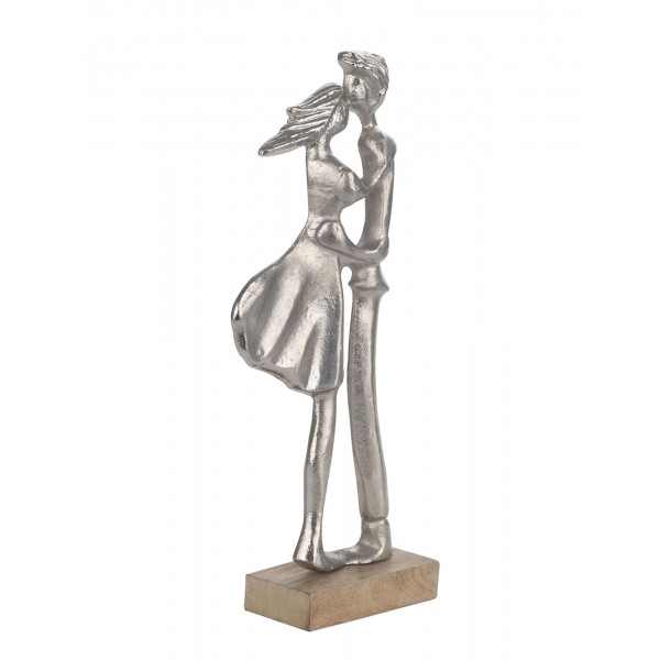 SIGNES GRIMALT Figurine Couple stylisé en résine, Tendre Baiser, Argent et Bois veiné, Hauteur 37 cm