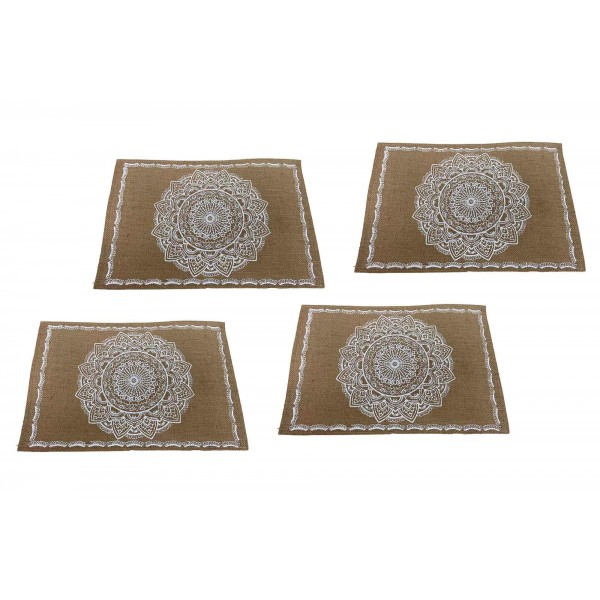 Ensemble 4 Sets de Table Mandala 100% Fibres Naturelles et Corde tressée, Longueur 45 cm