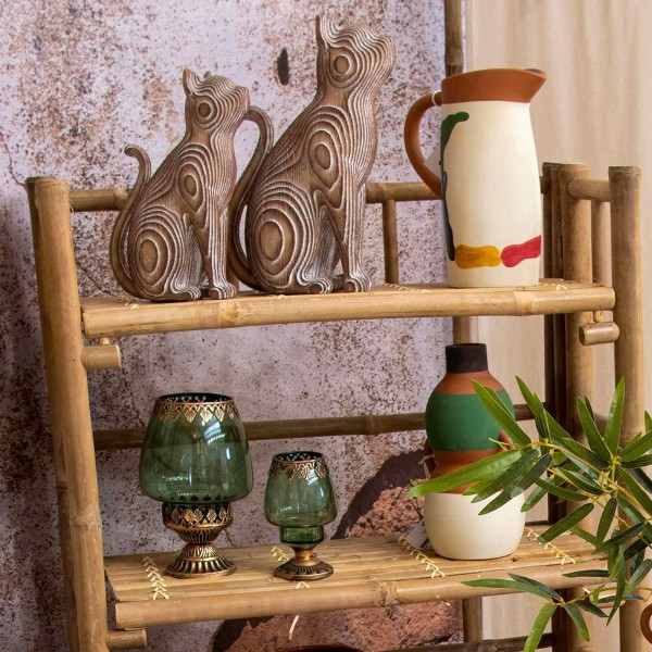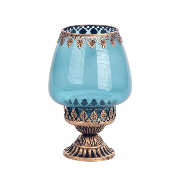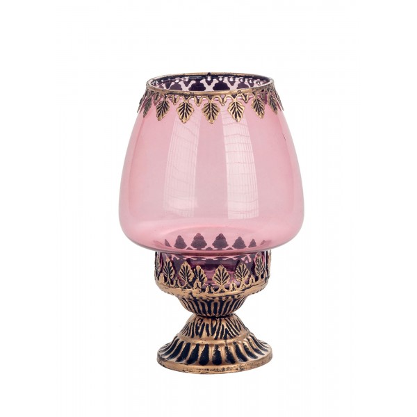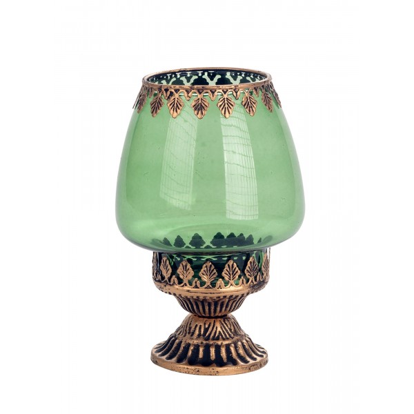 Set 3 Bougeoirs et Photophores en Verre coloré et Pied Laiton, Collection Gloria, 18 x 12 x 12 cm