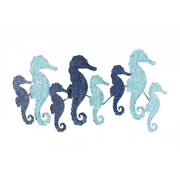 ORIGEN Déco Murale Métal Marine : Défilé de 8 hippocampes bleue, Design Tropical, longueur 78 cm