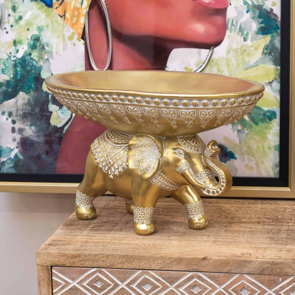SIGNES GRIMALT Décoration Résine : Eléphant doré et Plateau Vide-Poche, Collection Glory, Longueur 29 cm