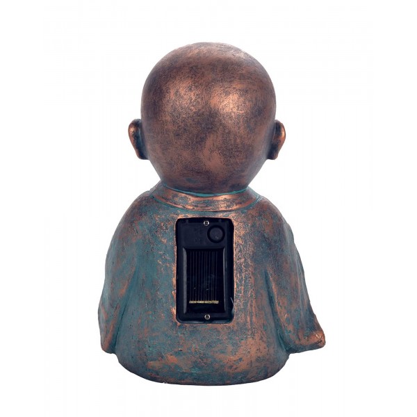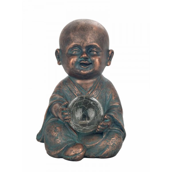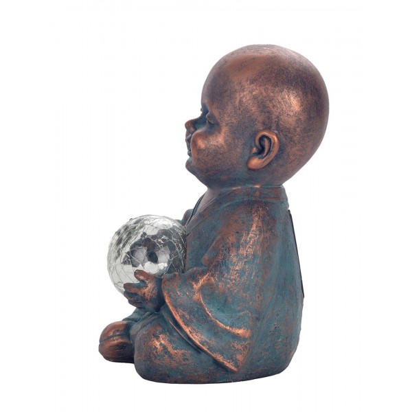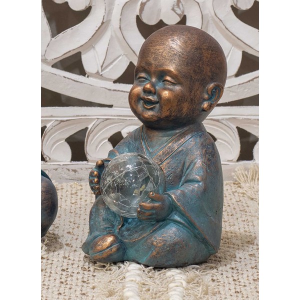 SIGNES GRIMALT Figurine Zen extérieure Résine : Moine & Sphère LED à capteur Solaire, Cuivre et Bleu, H 22 cm