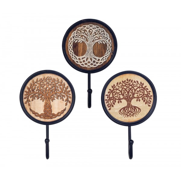 SIGNES GRIMALT Set 3 Patères - Portemanteaux en Métal, Modèles Arbres de vie, Hauteur 17 cm