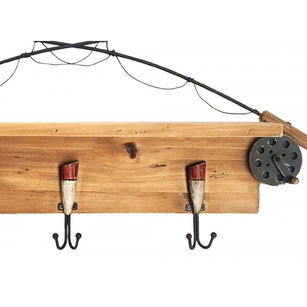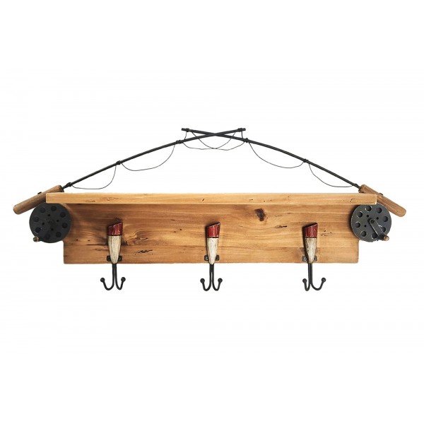 ORIGEN Portemanteau et Patère Thème Mer, Cannes à pêche et appâts, 3 crochets, Longueur 66 cm