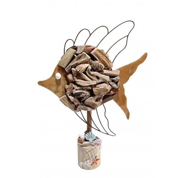 SIGNES GRIMALT Déco Bord de mer XL : Grand Poisson en Bois flotté et Bois MDF sur Socle, Hauteur 52 cm