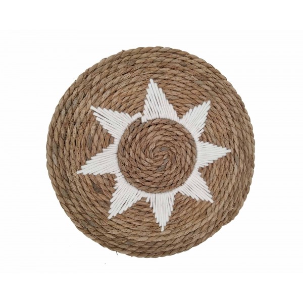SIGNES GRIMALT Décoration murale bohème stylisée en jonc de mer tressé, Marron et Blanc, Diamètre 50 cm
