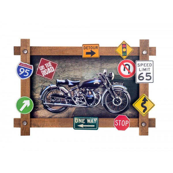 THERMOBRASS Tableau Moto USA avec Panneaux indicateurs Vintages, Bois et Métal, Longueur 60 cm
