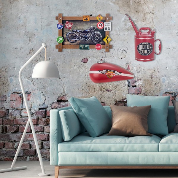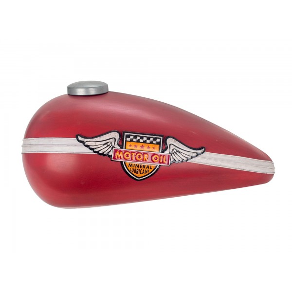 Décoration murale Réservoir de Moto rouge, Modèle Motor Oil, Longueur 51 cm.