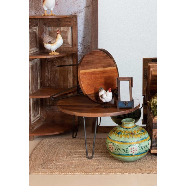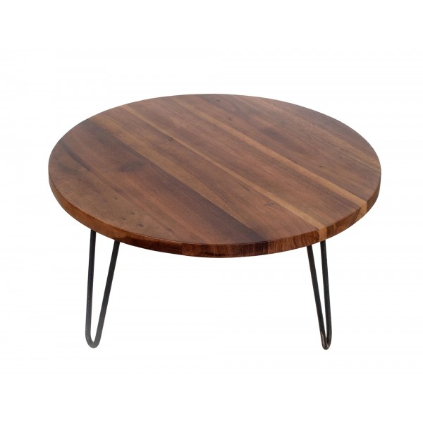 SIGNES GRIMALT Table Basse, Plateau en Bois veiné et piétement métal, Diamètre 70 cm